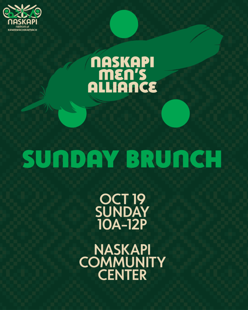 The Naskapi Men’s Alliance invites all men to join us for a Sunday Brunch at the Naskapi Community Center.