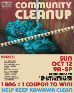 Due to the rainy weather, the Community Cleanup has been postponed to Sunday, October 12, from 9:00 AM to 5:00 PM. We still want everyone to take part and help keep Kawawa clean and… Read More